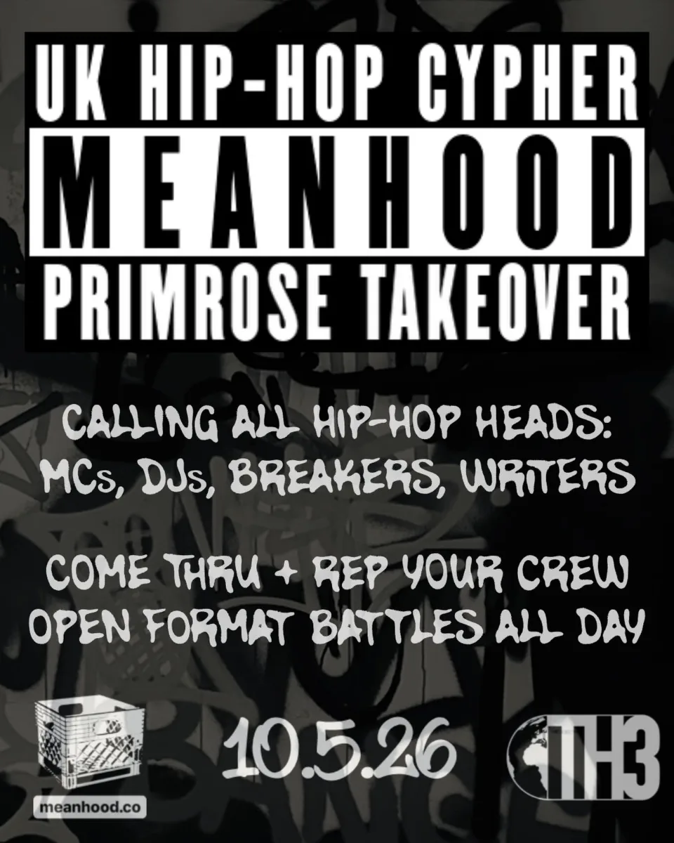 Już 10 maja 2026 roku The Primrose Pub w Leeds stanie się areną dla wszystkich czterech filarów kultury hip-hopowej podczas "Meanhood Primrose Takeover”. To całodniowe wydarzenie, organizowane przez Meanhood we współpracy z ekipą TH3 z Nottingham. Organizatorzy zapraszają na otwarte bitwy i cyphery, w których swoje skille mogą sprawdzić nie tylko twórcy graffiti, ale również raperzy, DJ'e oraz tancerze breakdance.