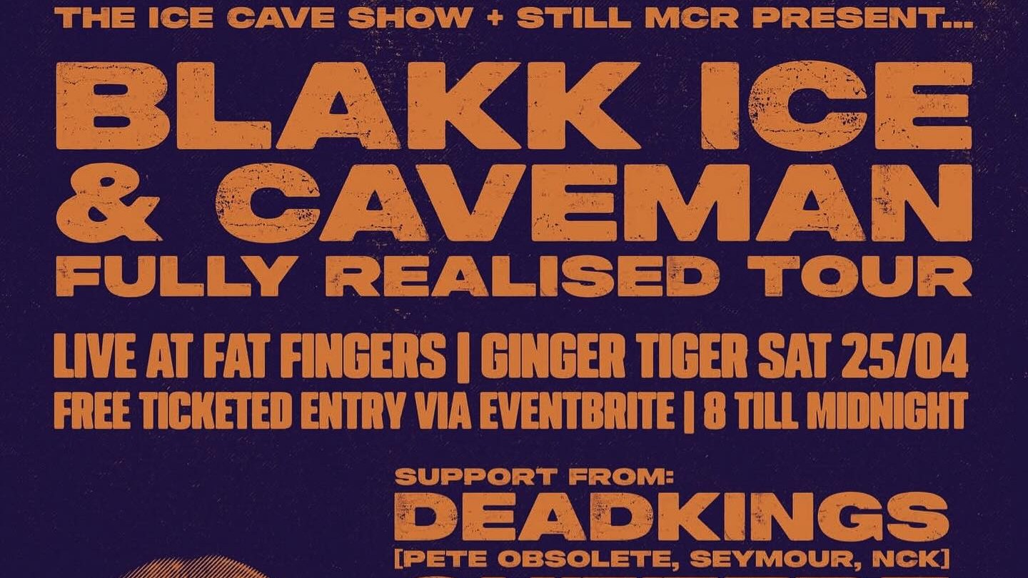 Reprezentanci podziemia z Manchesteru zagrają materiał z najnowszej EP'ki, a ich brzmienie organizatorzy określają jako połączenie A Tribe Called Quest z The Streets. Blakk Ice kojarzony jest w lokalnym środowisku ze swojej wszechstronności oraz udziału w głośnym cypherze z Kendrickiem Lamarem w 2016 roku. Caveman to z kolei freestyler i raper bitewny, udzielający się na platformach takich jak PenGame czy Premier Battles. Jako support na scenie pojawią się kolektyw Deadkings (Pete Obsolete, Seymour, NCK) oraz producent Cutterz.