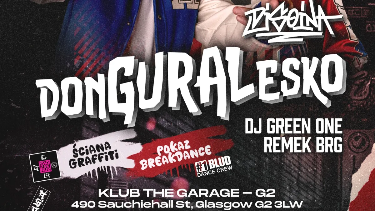 W sobotę, 6 czerwca 2026 roku, klub The Garage w Glasgow zamieni się w stolicę polskiego hip-hopu. Projekt G organizuje koncert, podczas którego gwiazdą wieczoru będzie donGURALesko (DGE) wspierany przez DJ'a Soinę.