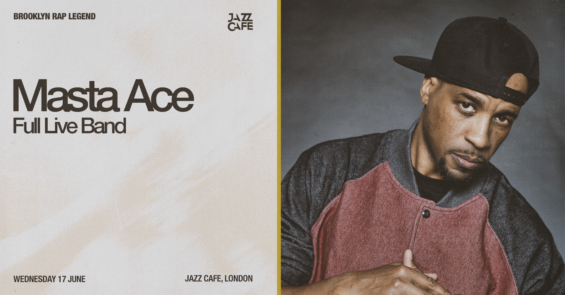Legendarny reprezentant nowojorskiego Brooklynu i weteran wschodniego wybrzeża, Masta Ace, wystąpi w Londynie w towarzystwie live bandu. Koncert odbędzie się w środę, 17 czerwca 2026 roku w The Jazz Cafe na Camden.